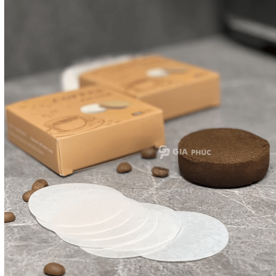 Giấy lọc phê tròn 51mm 53mm 58mm| Puck Screen | Hộp 100 tờ | Bột gỗ tự nhiên