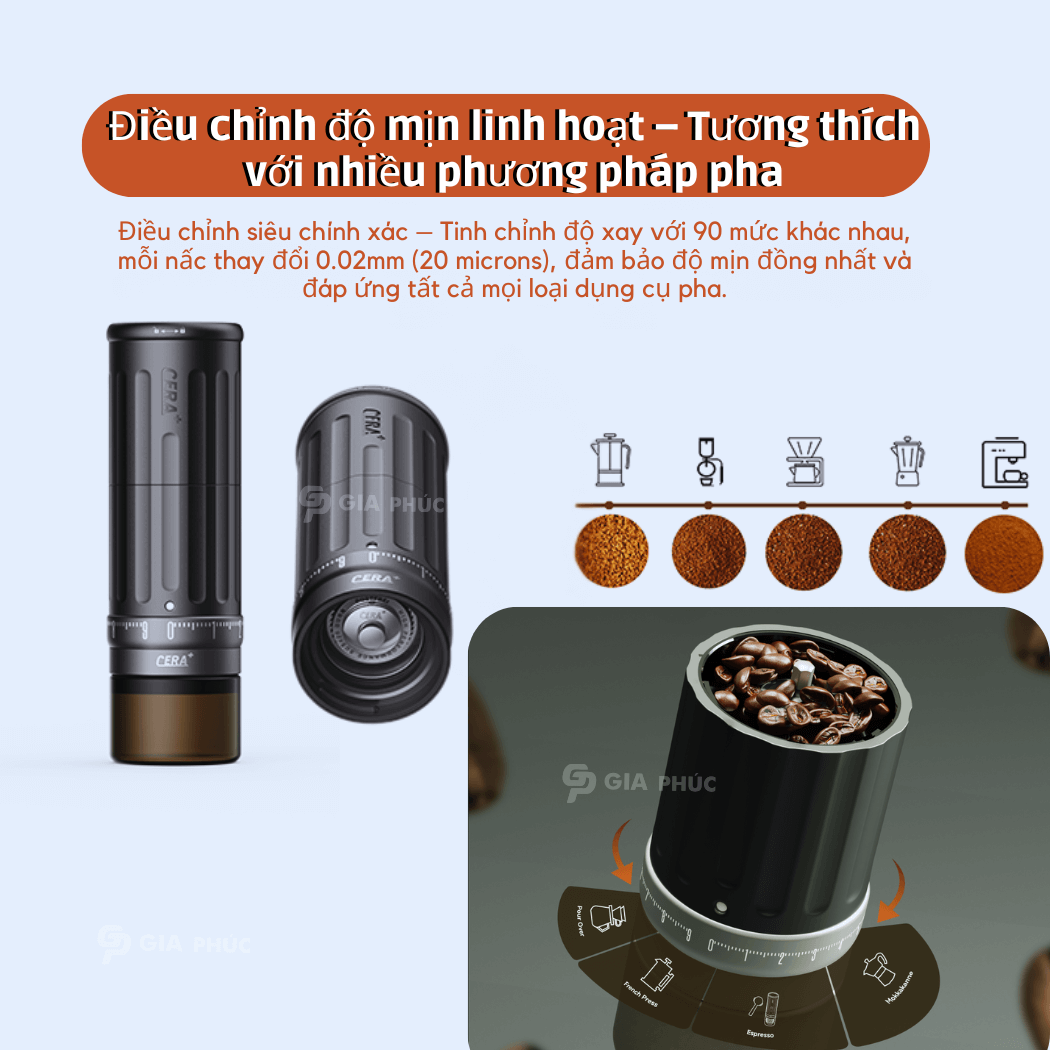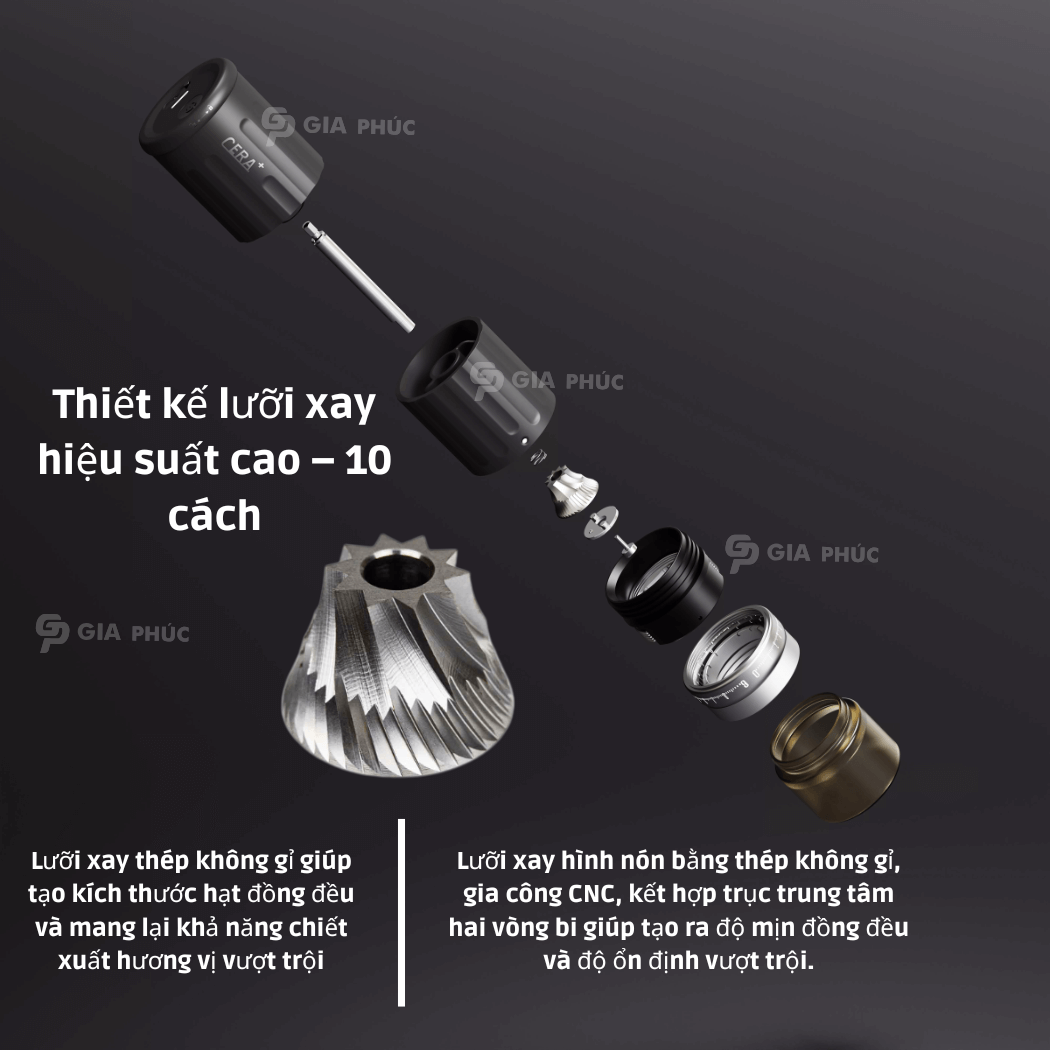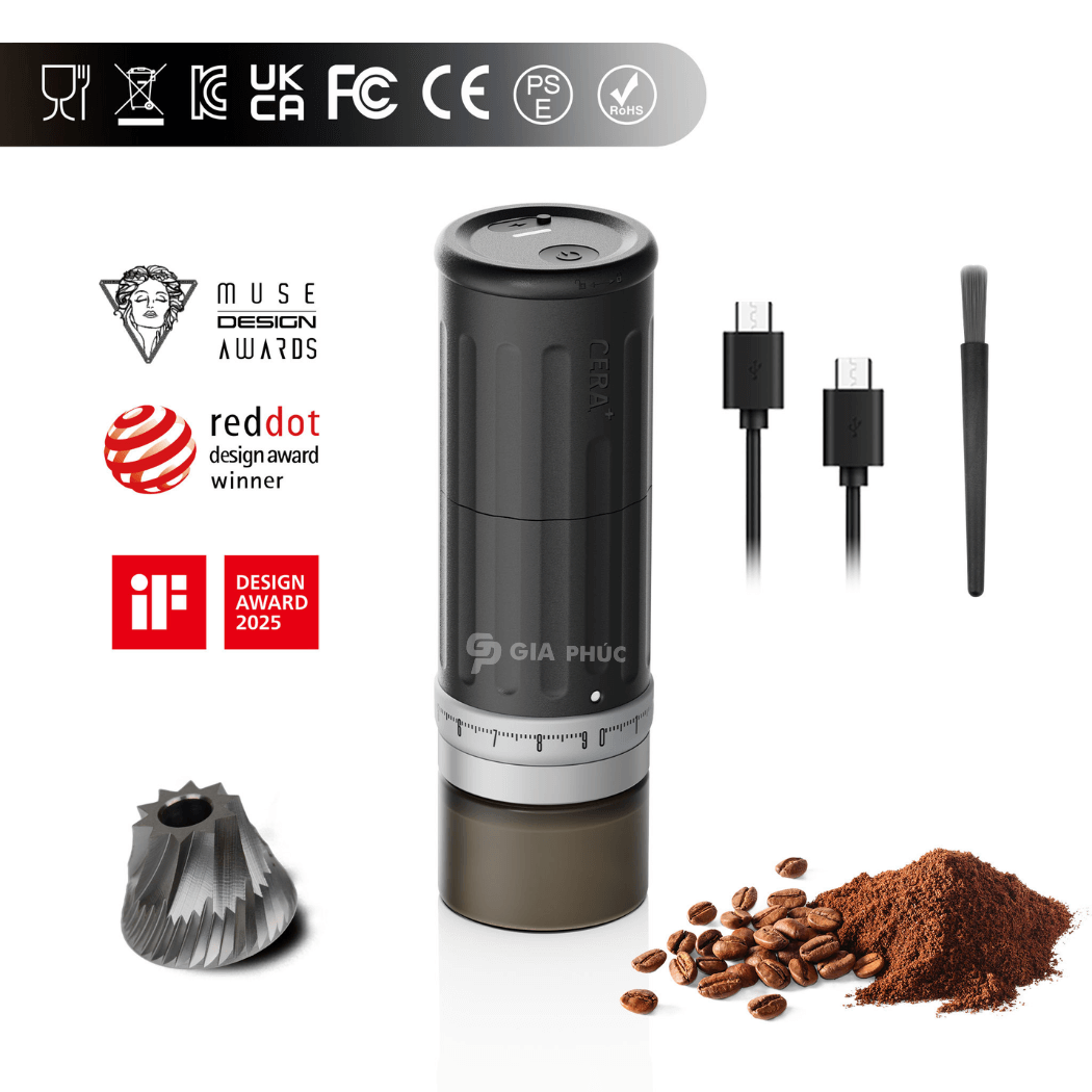 Đặt mua Máy xay cà phê điện cầm tay CGE03 | CERA+ | lưỡi Burr 10 cách thép SUS420 | Pin 2,400mAh