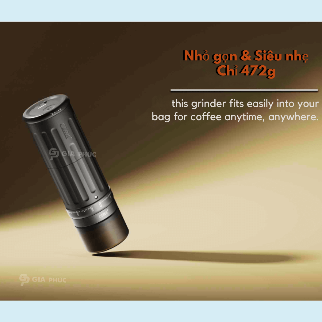 Máy xay cà phê điện cầm tay CGE03 | CERA+ | lưỡi Burr 10 cách thép SUS420 | Pin 2,400mAh